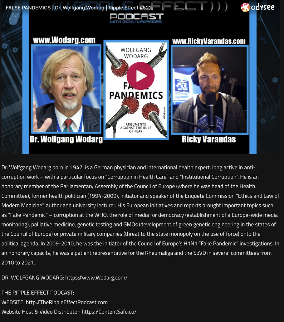 Wolfgang Wodarg MD is a doctor who was a public health official, a member of the German parliament, and later in the Council of Europe. He fought against the 2009 Swine Flu Fake and is an